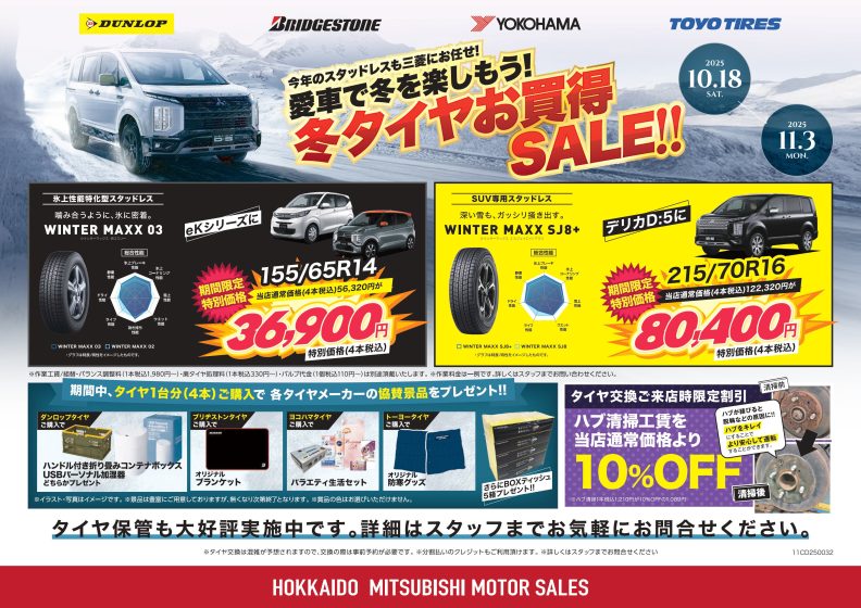 10/18(土)~11/3(月・祝)までタイヤフェア開催します!