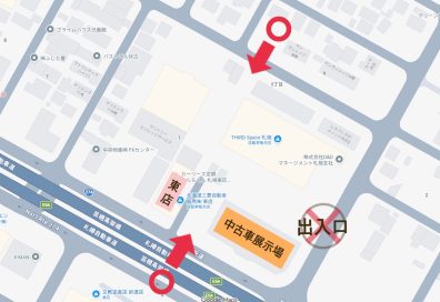 ご来店いただく際は、新道側または店舗裏側の出入口を