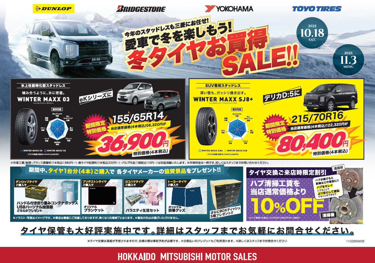 タイヤ1台分(4本)ご購入で各タイヤメーカーのノベルティをプレゼント🎁