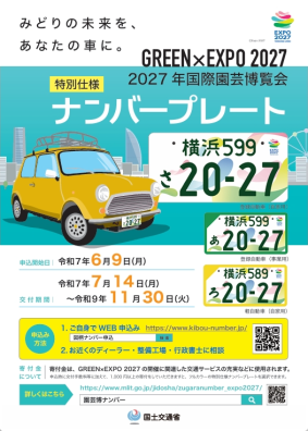 大阪・関西万博ナンバープレートが終了しますが、GREEN×EXPO 2027(2027年国際園芸博覧会)のナンバープレートが新しく仲間入りしています🌷🌼🌻