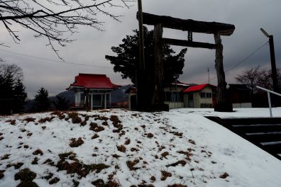 神社は閉校した大岸中学校のグランドの端っこにあるみたいです。