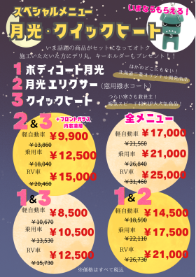 🌙ボディコート月光と新商品の月光エリクサー(窓ガラス用撥水コート)🌙