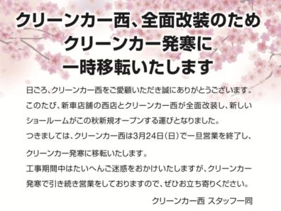 新しいショールームが、この秋NEWオープン!【西店全面改装のお知らせ】2019/03/18 MON -
